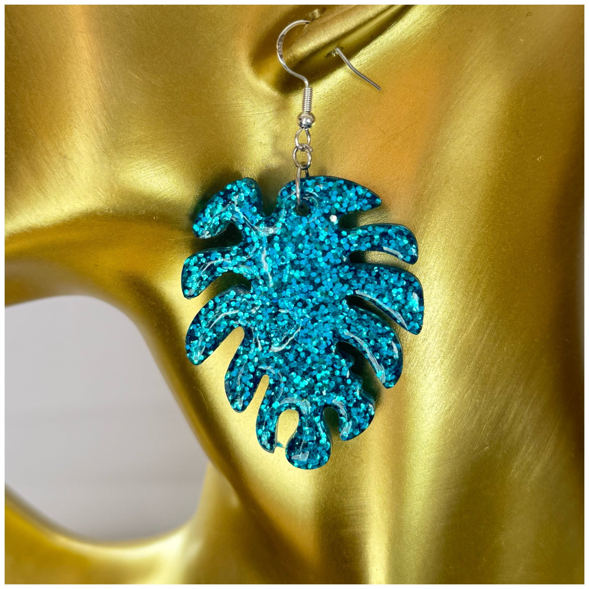 These vibrant, glitter-infused beauties capture the essence of tropical vibes, adding a splash of fun to any outfit. Crafted in a playful palm leaf design, they shimmer with every movement, making them the perfect accessory for a beach day or a night out.