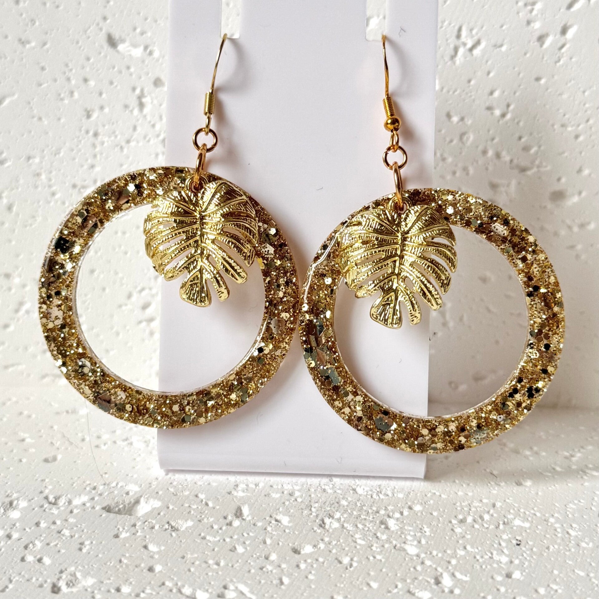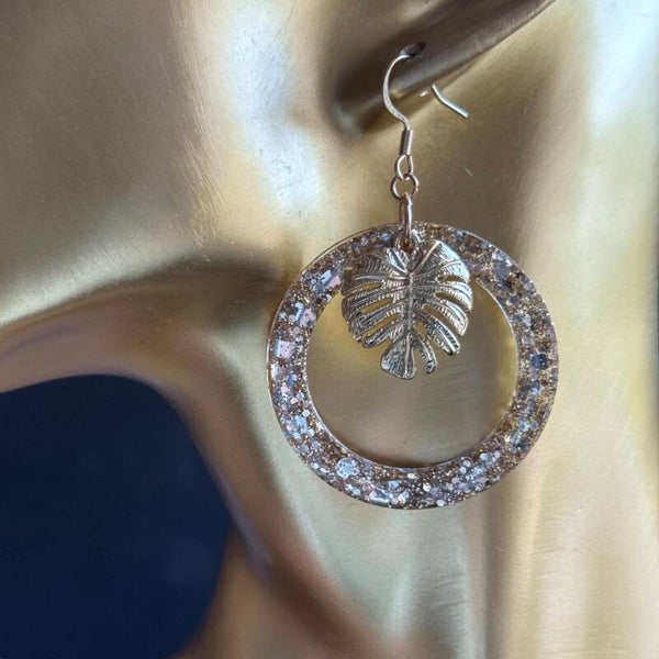 Featuring a stunning gilded leaf charm suspended in a sparkling hoop, these beauties are perfect for adding a touch of tropical glam to any outfit. Whether you’re hitting the beach, brunching with friends, or just jazzing up your everyday look, these earrings will have you feeling like the life of the party!